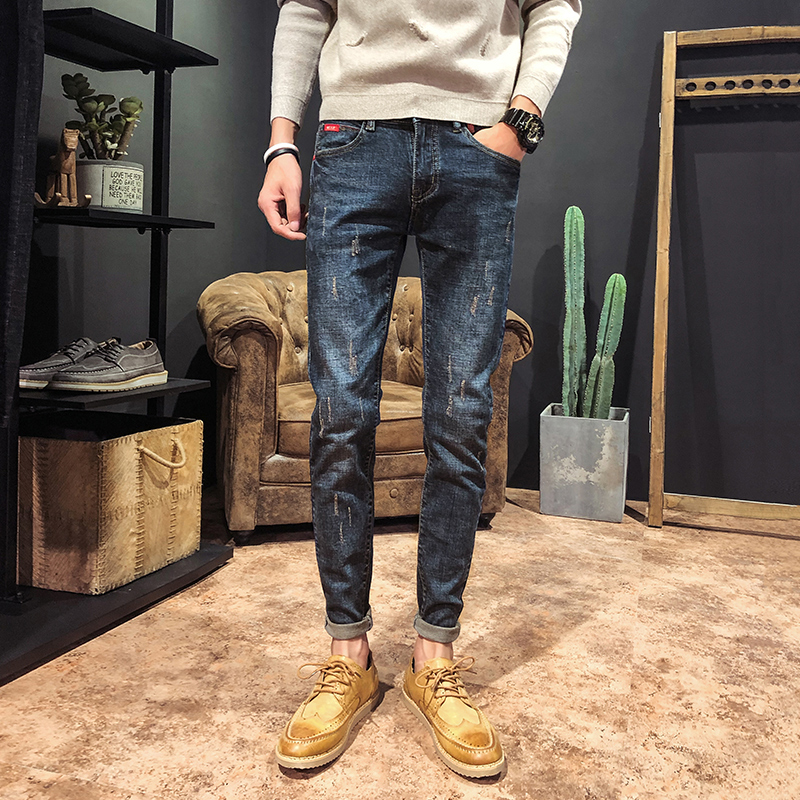 2022 Spring and autumn new washed embroidery men's jeans Men's Korean version trendy retro small feet casual long pants