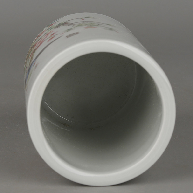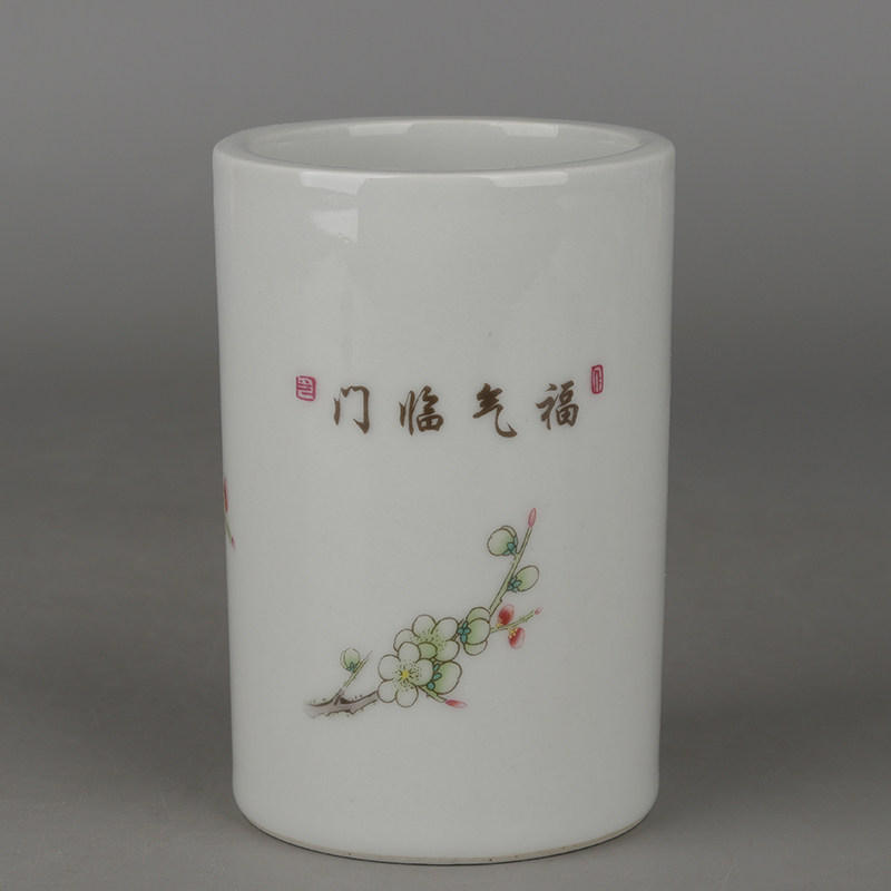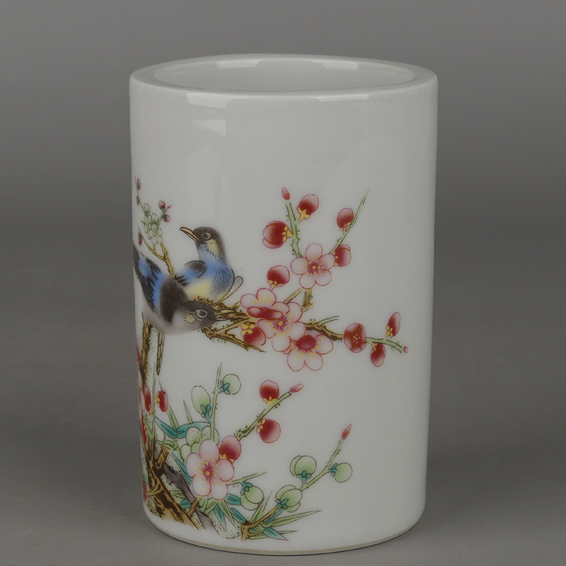 Retro Great Qing Guangxu Year section powder color Fuqi Linmento flower and bird grain small pen holder imitation antique and antique porcelain collection