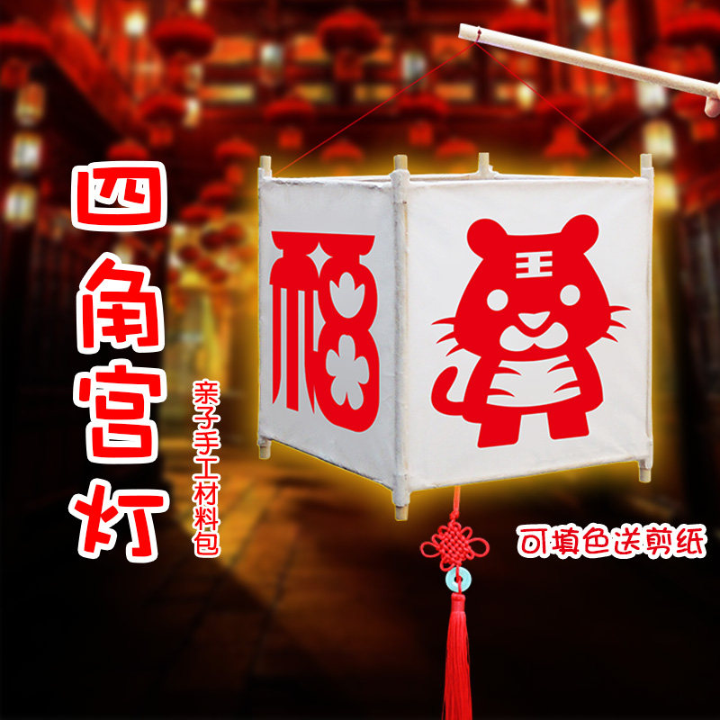 New Year Retro China National Wind Traditional Four-corner Palace Lantern Children Handmade Diy Tipoles to fill up the Spring Festival Bamboo decorations