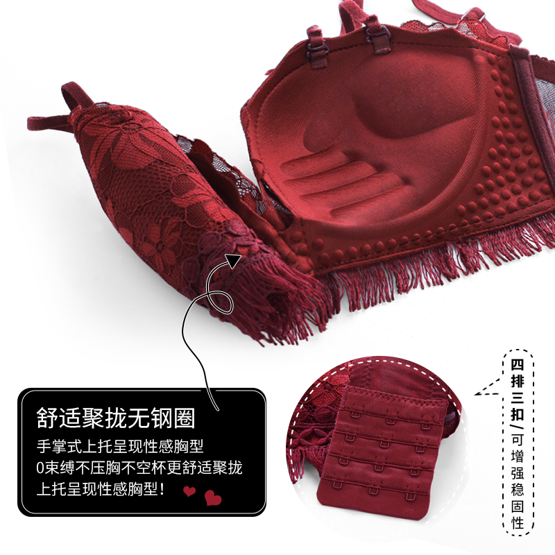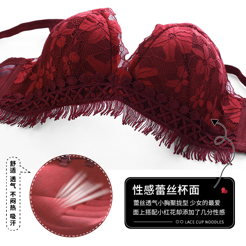 Sexy Lingerie Teenage Years Rat Year Wine Red Small Breasts Thickened Bra Without Steel Ring Poly-Adjusted Underwear