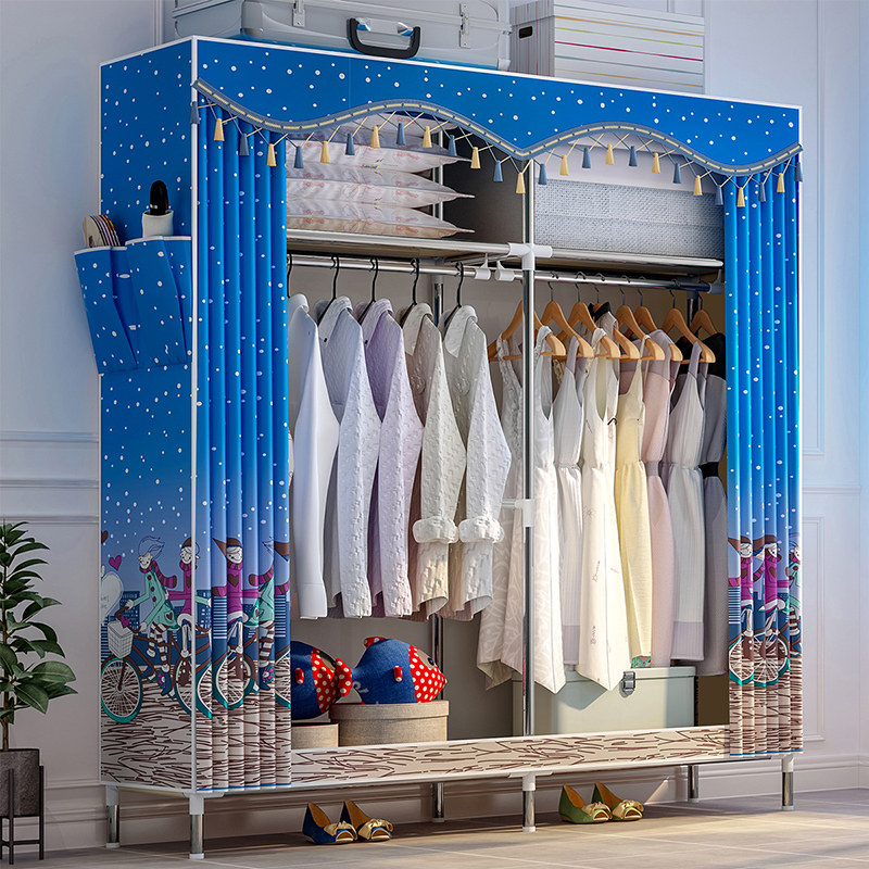 Simple cloth wardrobe fabric steel pipe thick reinforcement wardrobe simple modern and economical assembly wardrobe storage cabinet