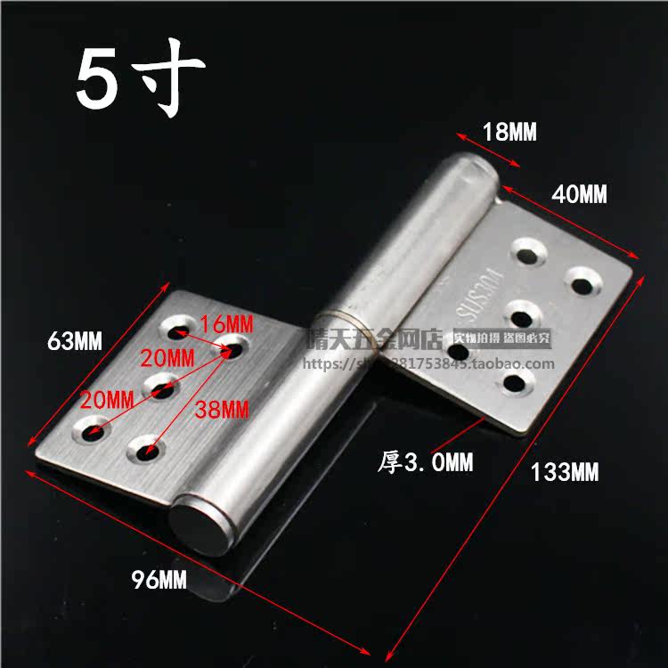 Thickened 5-inch stainless steel flag hinge unloading flag-shaped hinge fire escape fire door hinge anti-theft door hinge