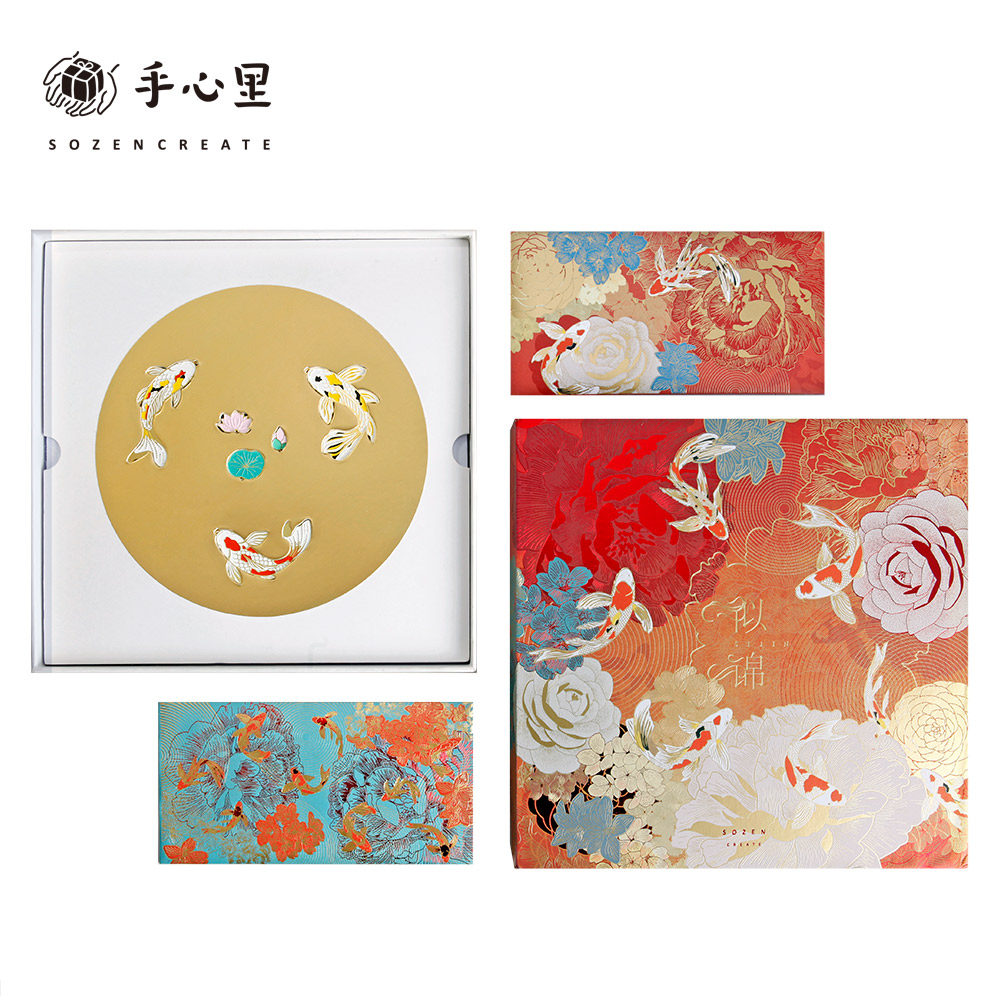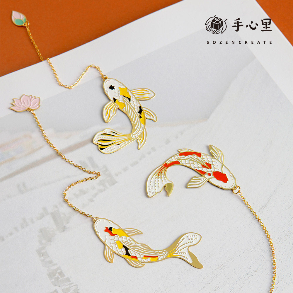 Lucky Koi bookmark in hand Bronzing gift box Red envelope gift Classical Chinese style creative ancient style gift customization