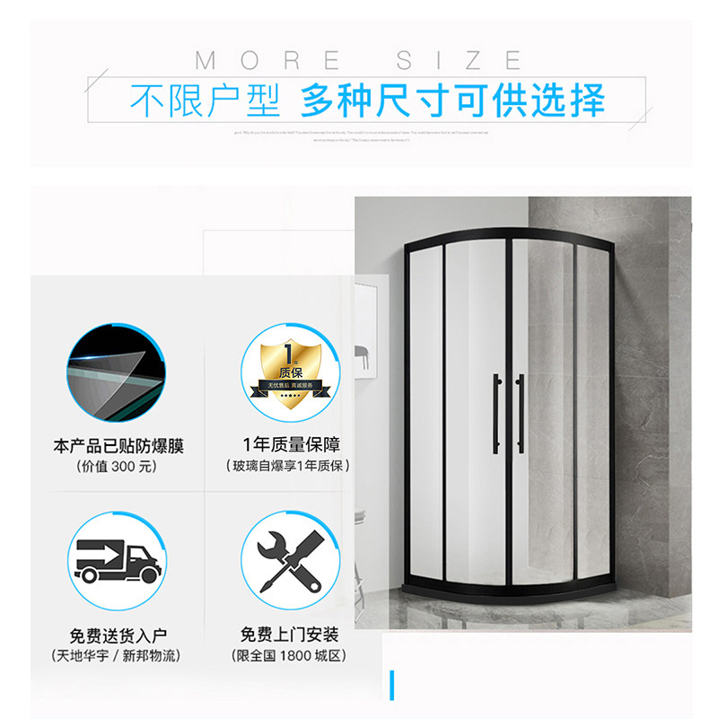 Arrow Sign Black Overall Bathroom Shower Room Tempered Glass Arc Sector Partition Bath Integrated Closed Bathroom