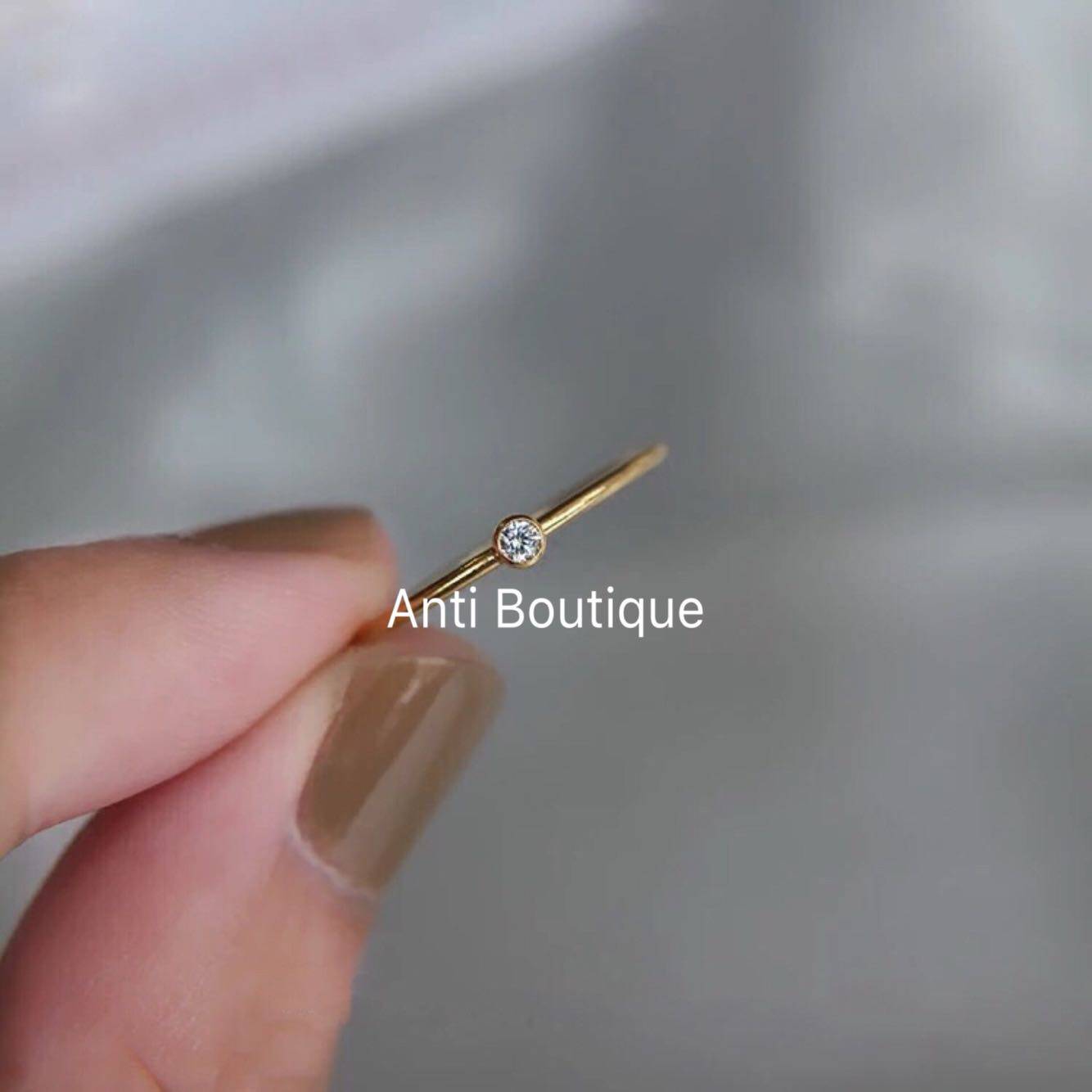 Anti-custom imported 14k bag gold ultra mini-wrapped edge zircon tail ring single drill fine ring finger ring joint ring
