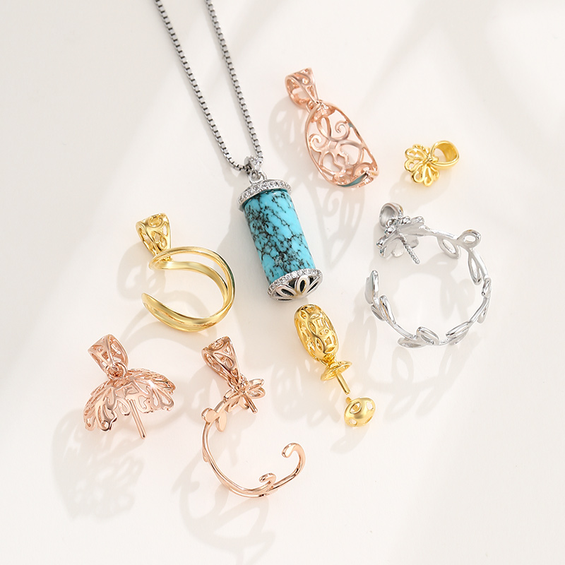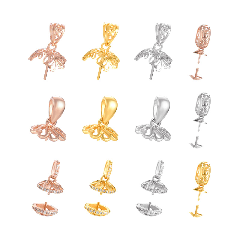 S925 sterling silver pearl pendant belt head female simple Japanese and Korean pin buckle 18K gold diy buckle beeswax beads jade buckle