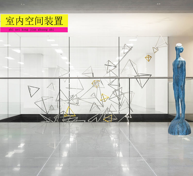 Sample House Display Center lobby aisle indoor space modern Chinese glass fiber landing figure imitation bronze twisted sculpture