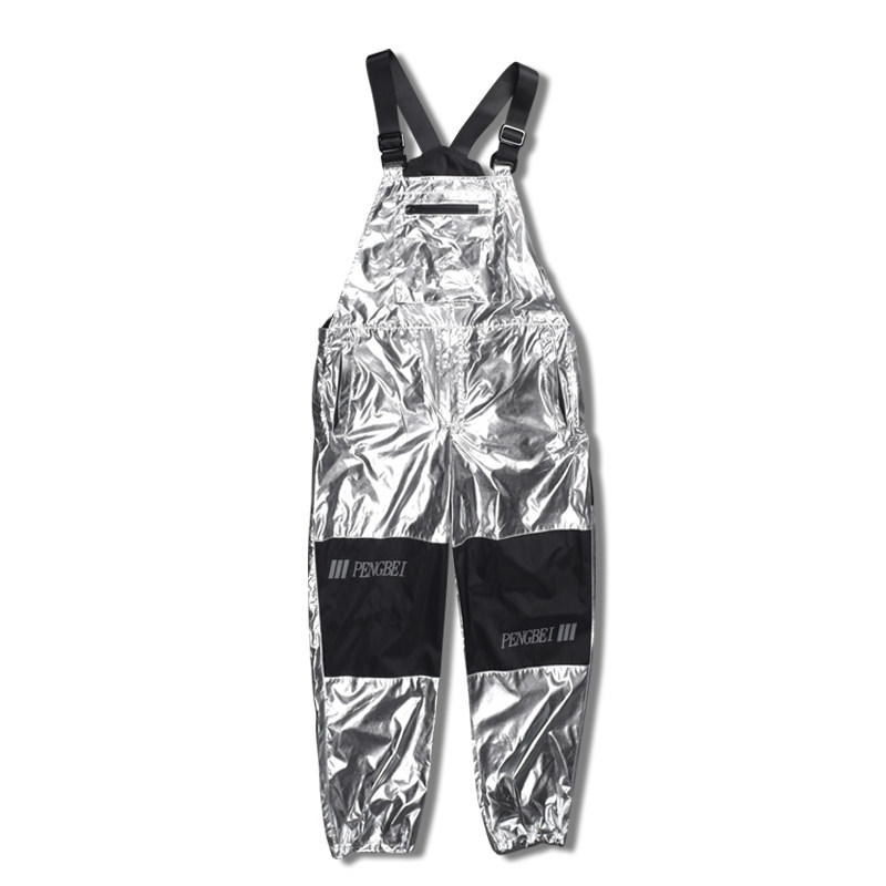 Shiny silver hip-hop men's overalls retro loose harem pants female hip-hop dance team custom 071