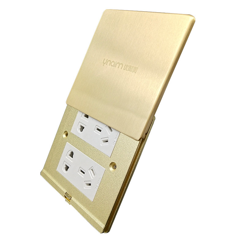 Home Concealed Floor Socket Copper Panel Flat Push Type Ground Plug Computer USB ten Hole Double Row Power Socket