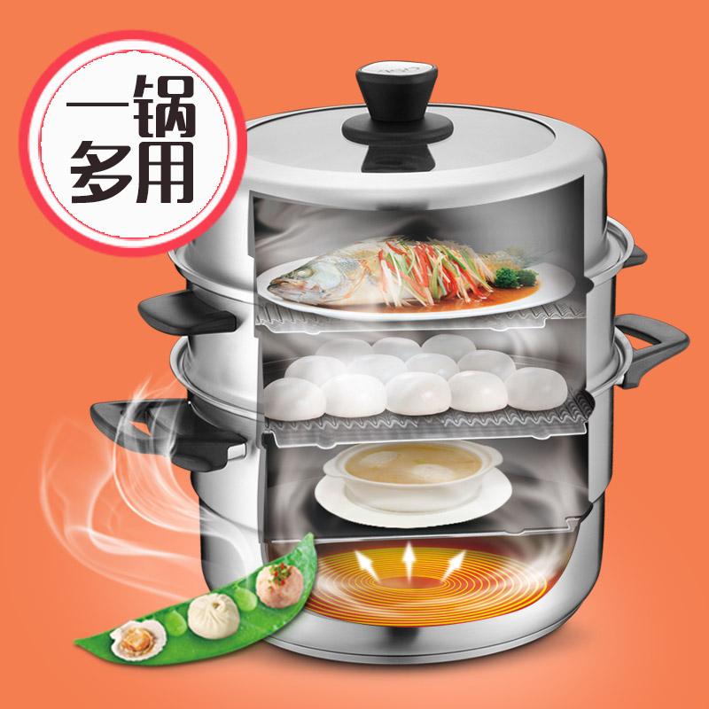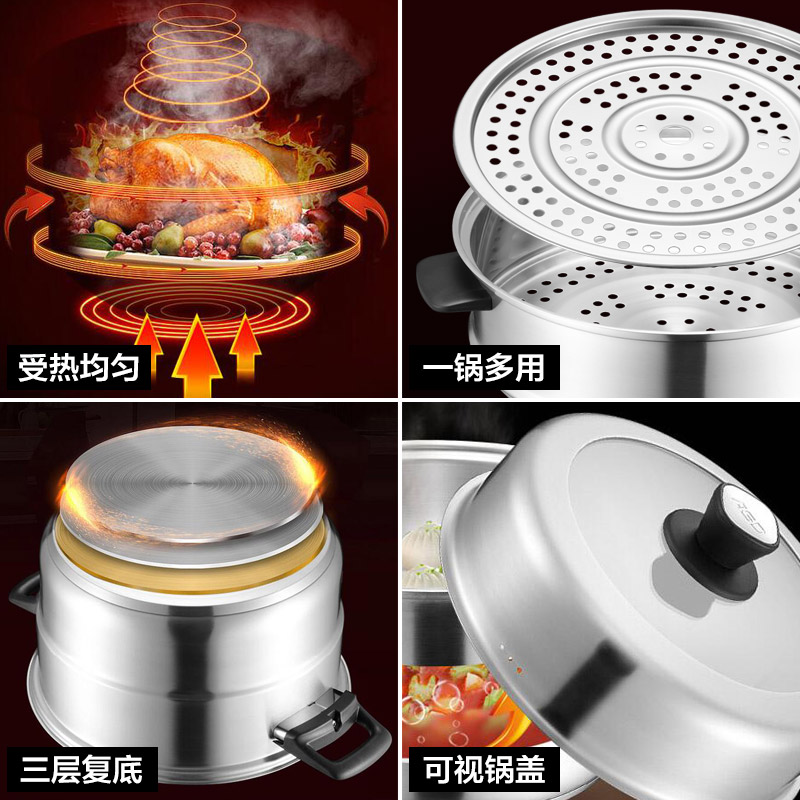 Asda steamer three-layer 304 stainless steel 30CM large capacity induction cooker gas steamer thickened bottom household