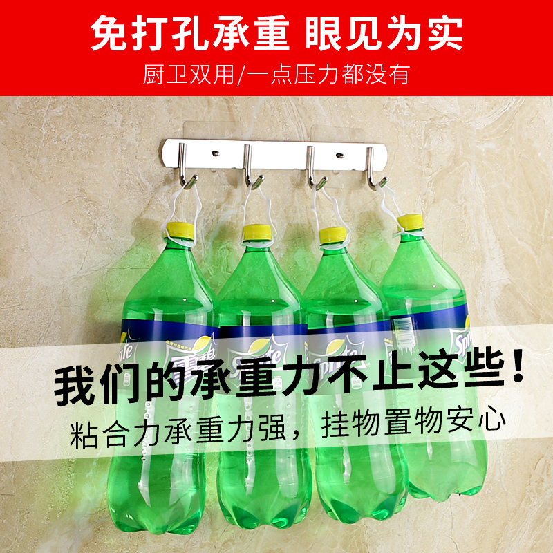 Free Punch Kitchen Hook Wall Wall-mounted Wall Stainless Steel Hanging Rod Washbasin Shelf Powerful Sticky Hook