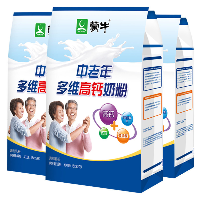 Mengniu middle-aged multi-dimensional high calcium milk powder 400g * 3 male women nutrition breakfast elderly formula milk powder bag