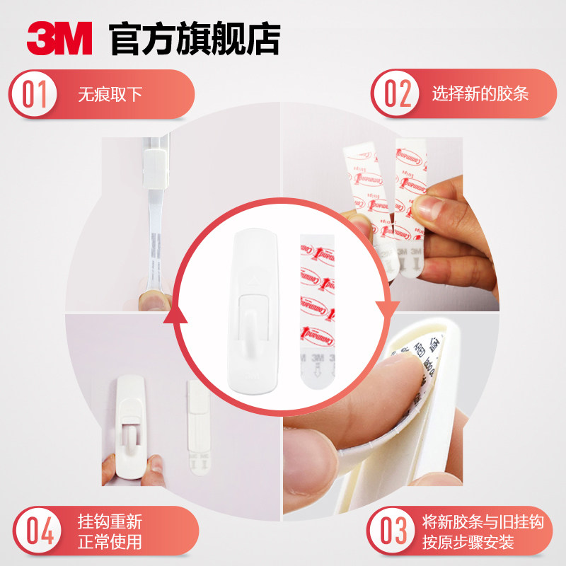 3M Goldman traceless hook glue replacement wall-mounted wall photo frame bathroom kitchen free punch traceless hook replacement