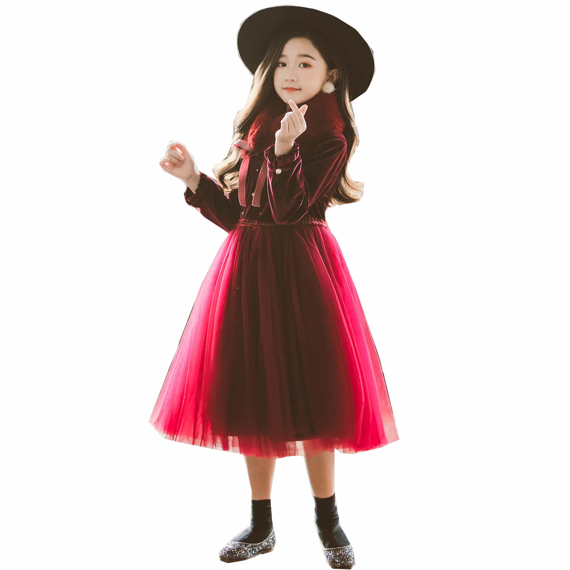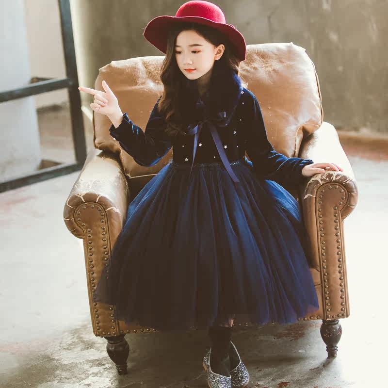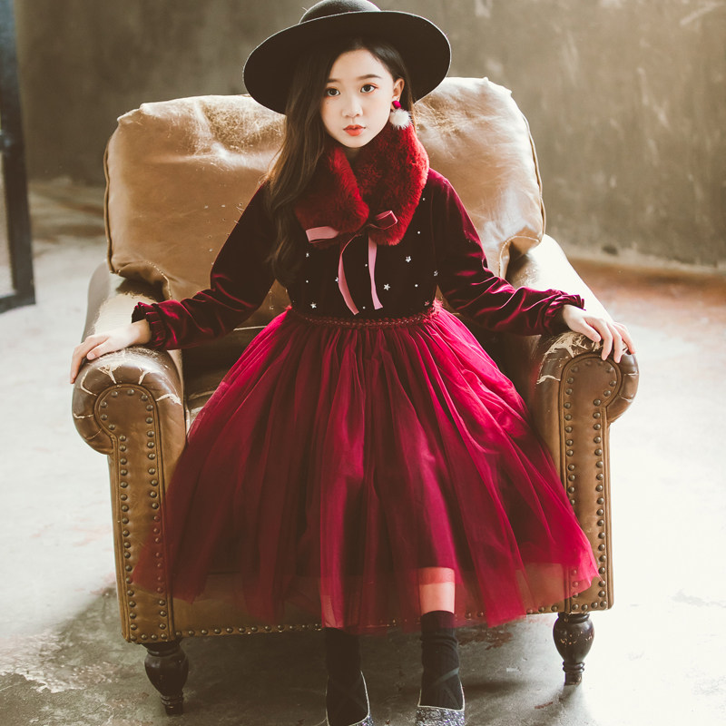 Girl Winter Dress Fluffy Dress Thickened Korea Suede New Year Foreign Dress 2020 New CUHK Child Velvet Skirt Princess Dress