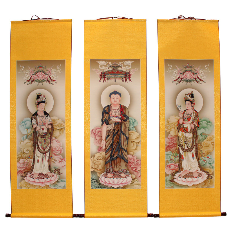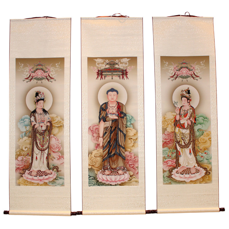Retro Western San Sacred Portrait Buddha Buddha Tangyuan Amita Buddha Hanging Painting HD Stereo Front