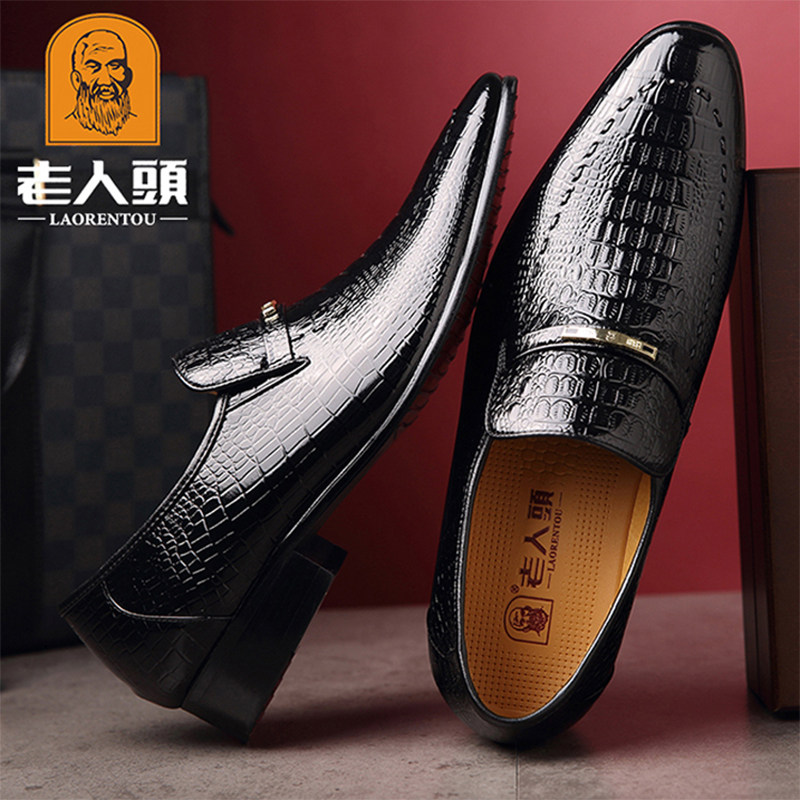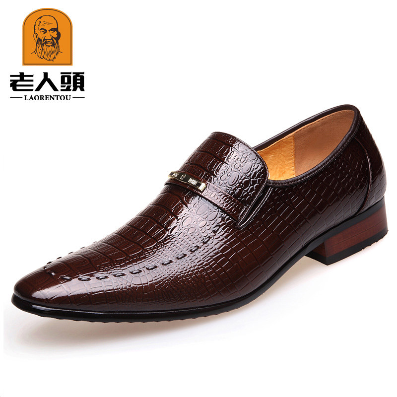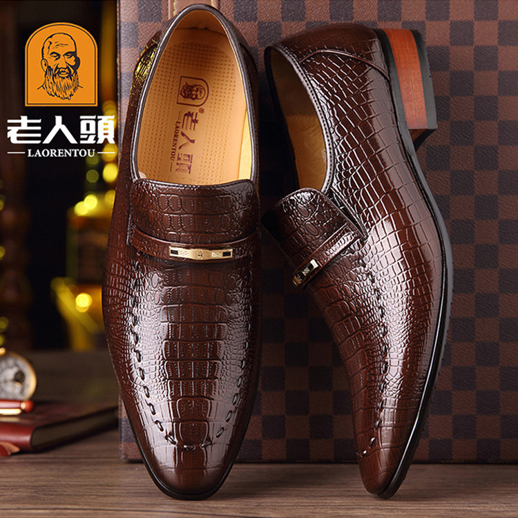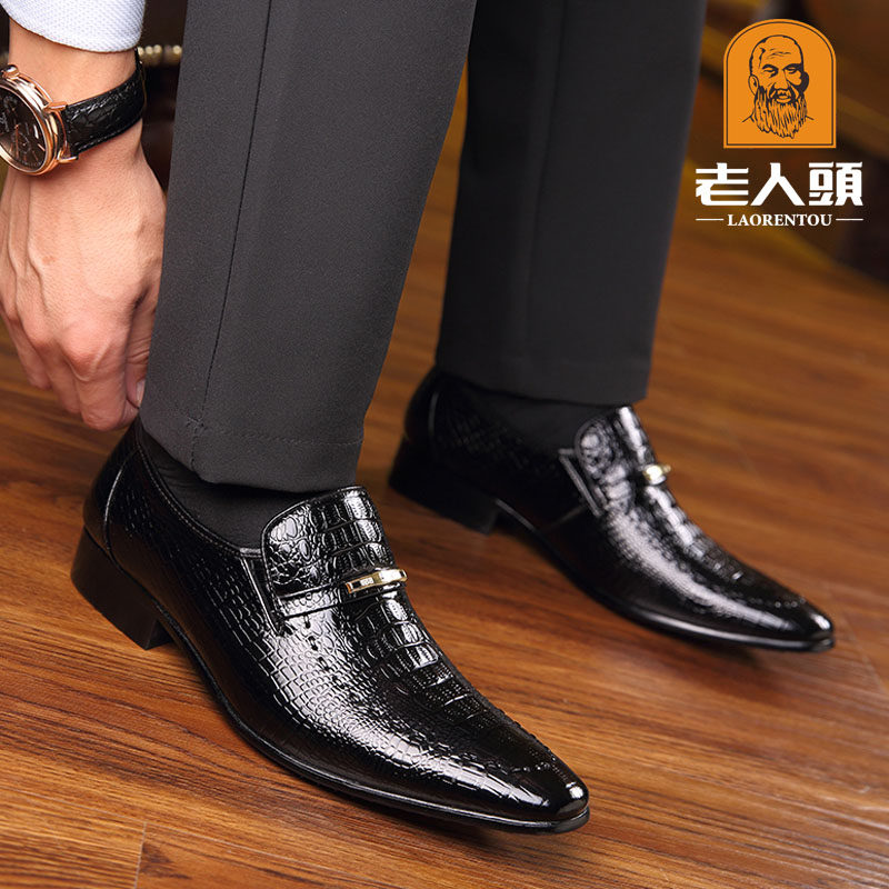 Old man's head leather shoes men's winter business dress men's shoes genuine leather Korean version crocodile crocodile leather Inlan pointed wedding shoes