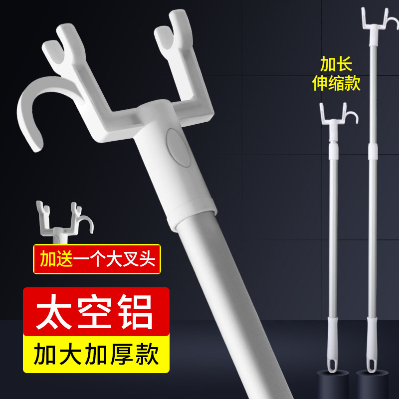 Support rod household stretched and long clothes fork aluminum alloy plus forkhead coat fork pick clothes drying rod