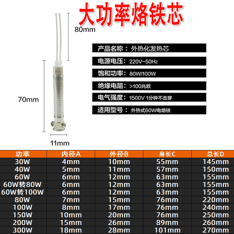 Grade A 30w heat-generating core (5 only) A grade 40w heat-generating core (5 only) A grade 60w heat-generating core (5 only) 60w head with 80w power (5 only) 60w header with 100w power