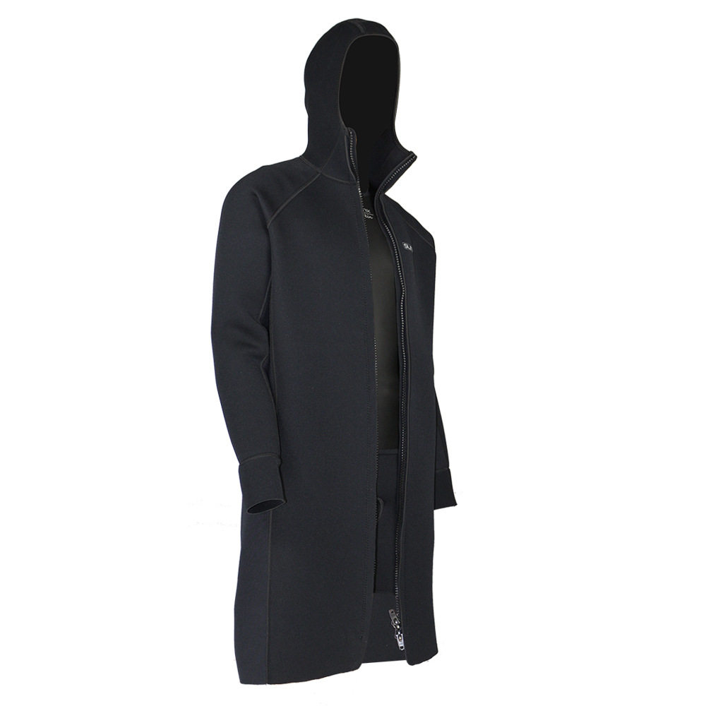 Diving windbreaker men and women thickened 3mm warm and chill anti-UV windproof boat Cebu winter black long version jacket