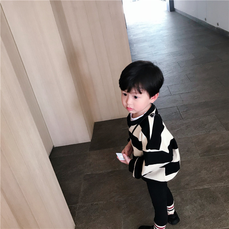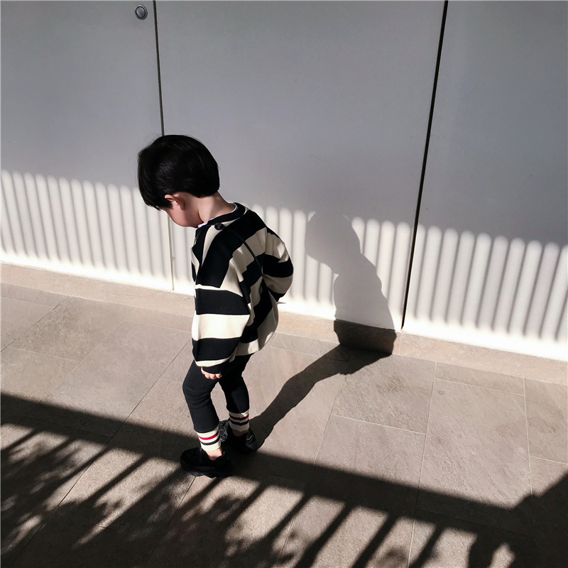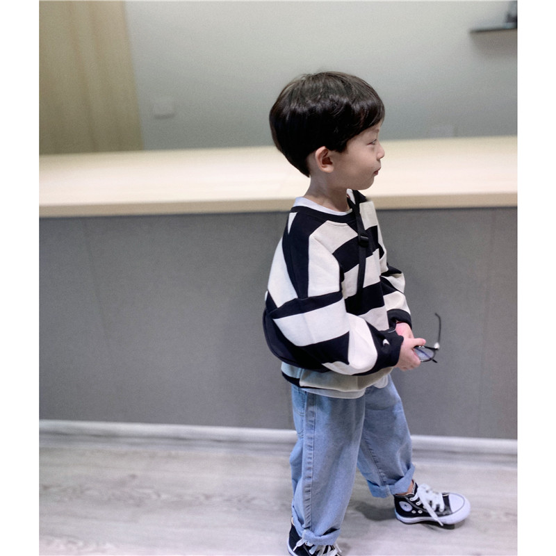 Children's mother custom defect special offer boys and children cotton Korean loose sweater baby striped pullover top autumn clothing