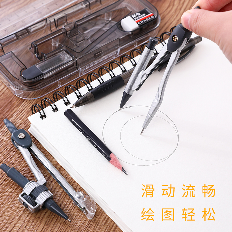 Chenguang stationery set ruler students use multi-functional set compasses straight ruler triangular plate protractor a set of student examination drawing measurement drawing tools professional metal stainless steel clip pen compasses