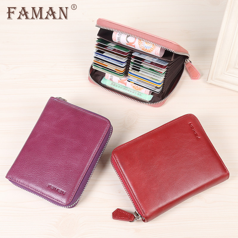 New Cardbag Lady Genuine Leather Screens Multi Anti-Degauss Ultra Slim Large Capacity Fine Upscale Small Dress Card Pack Woman