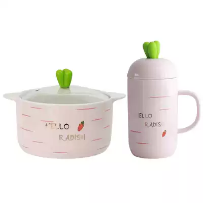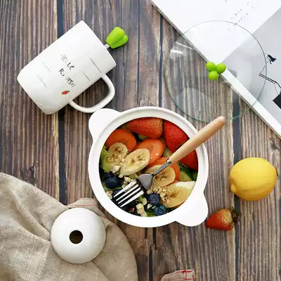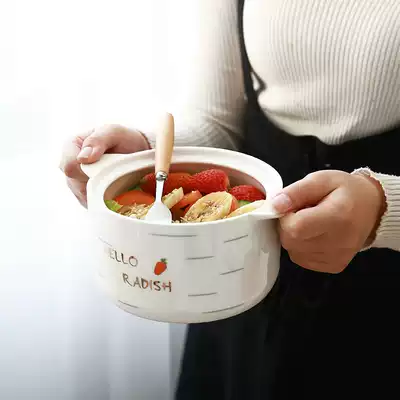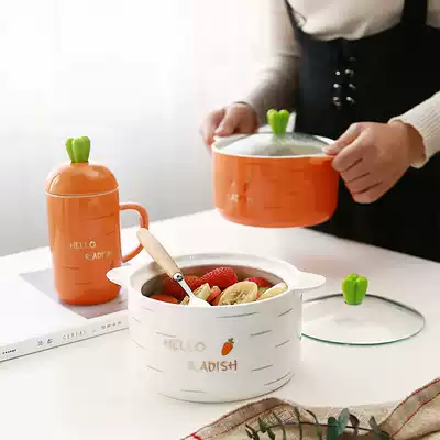 Cute instant noodle bowl Large Japanese style with lid binaural ceramic bowl cup Student dormitory household rice bowl soup bowl chopsticks set