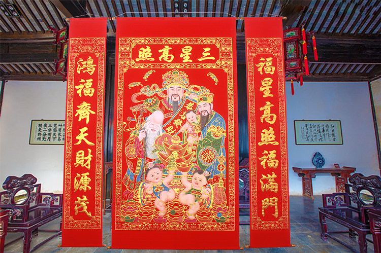 Upscale Thickened Flannel Bronzed gold Samsung High Photos Middle Hall Hung Painting Rural Hall House Extra-large Hanging Living-room Hall Decoration