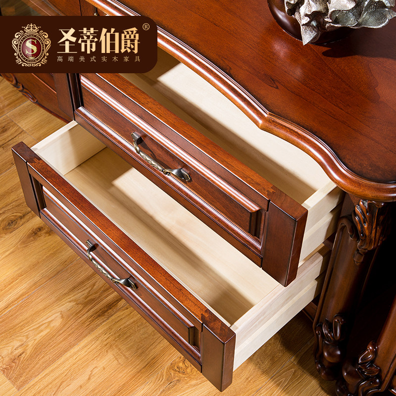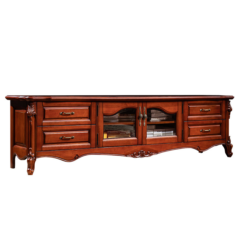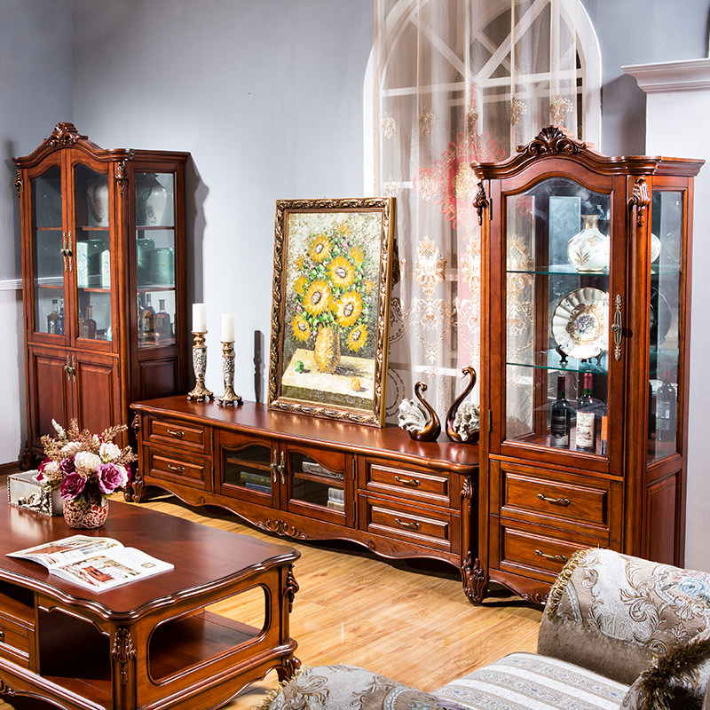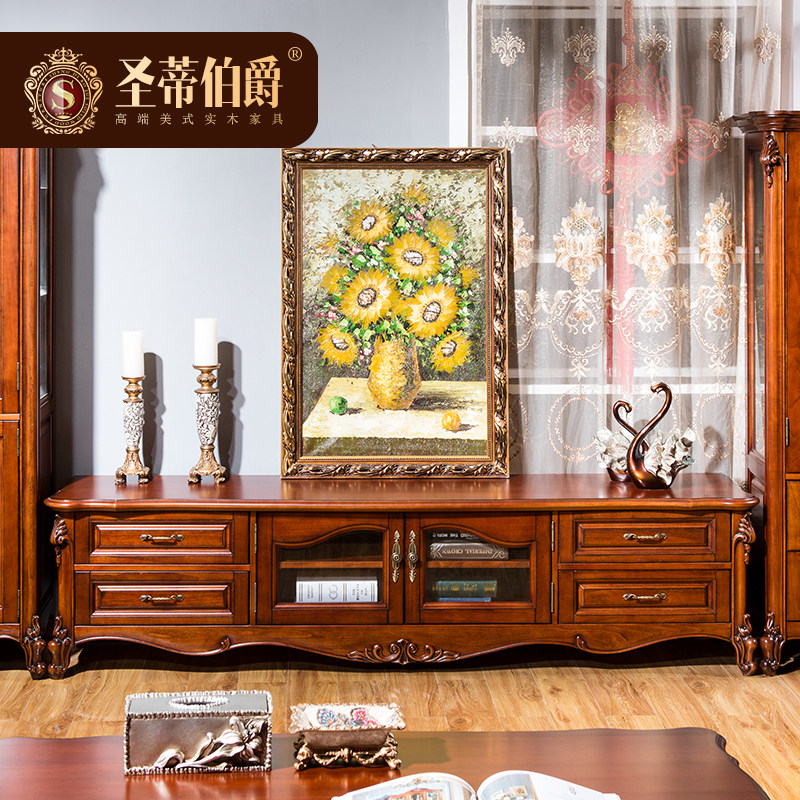 American country solid wood TV cabinet coffee table combination European TV cabinet storage floor cabinet living room TV cabinet 2 2m