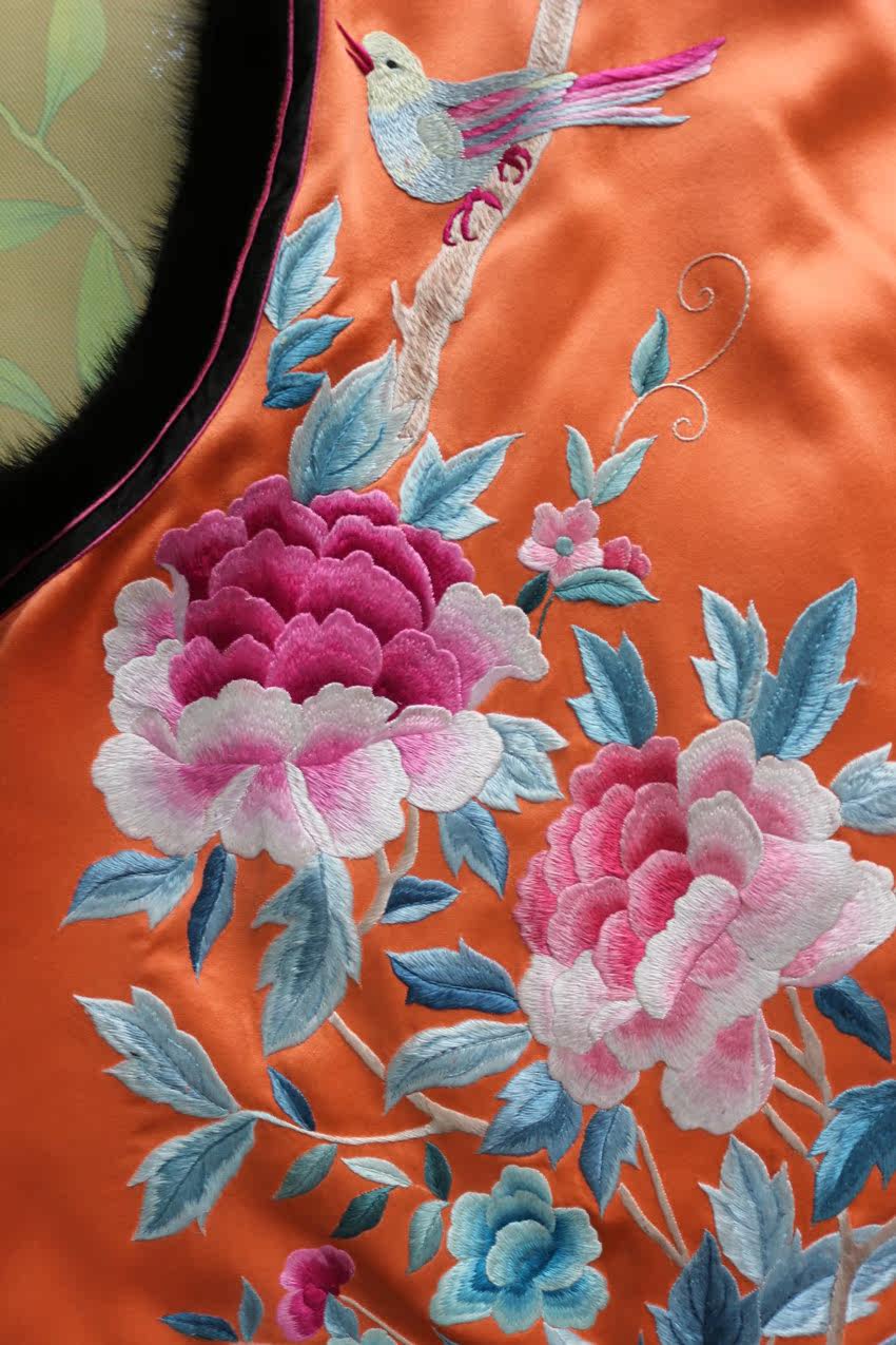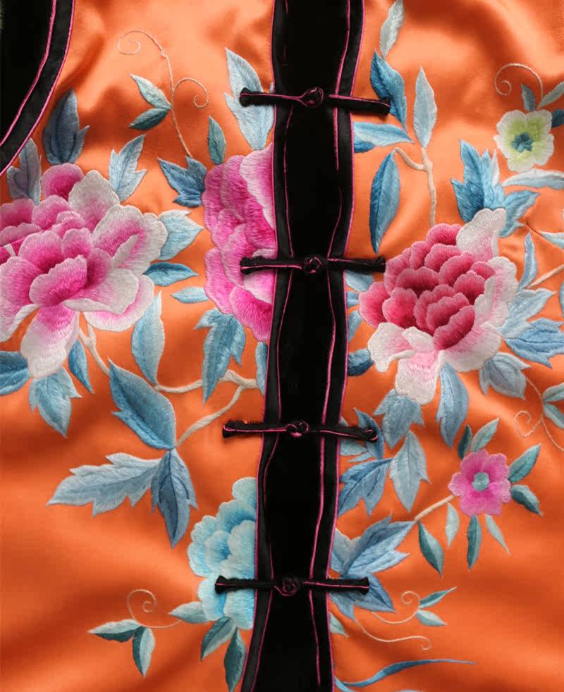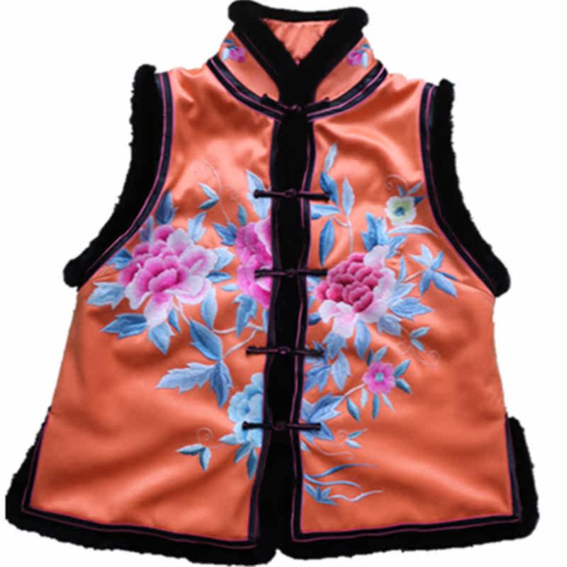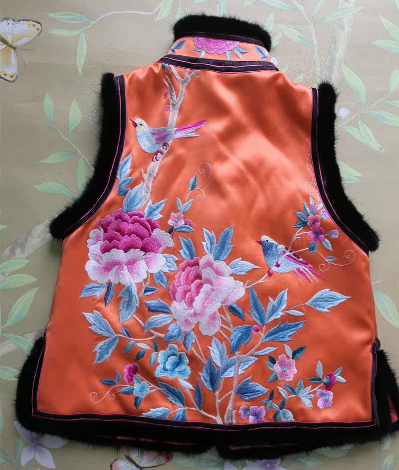 Improved Cheongsam autumn and winter ethnic style hand embroidery mink luxury winter quilted jacket waistcoat vest