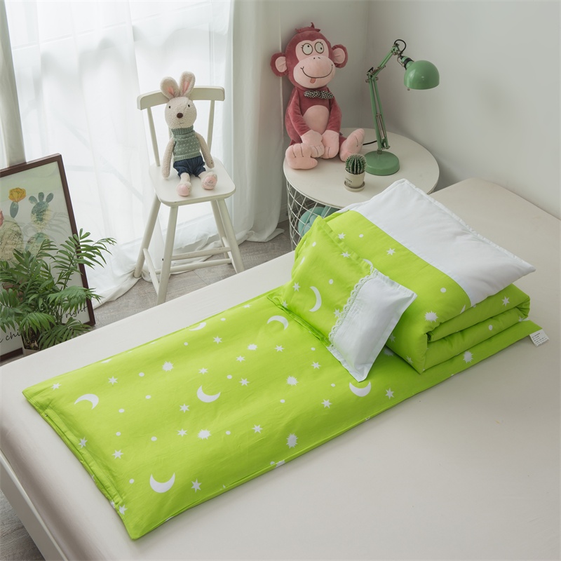 Kindergarten quilt three-piece cotton solid color stitching embroidery core-containing six-piece set baby nap quilt winter