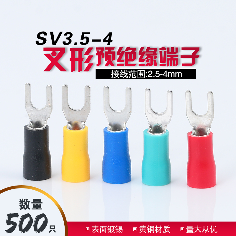 SV3 5-4 European-style fork-shaped pre-insulated cold-pressed terminal U-shaped Y-shaped wire ear copper terminal connector wire nose