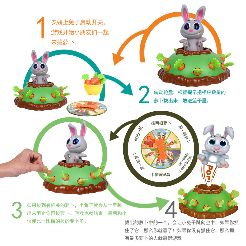 Rabbit happy pull radish educational toy Jump White rabbit pull radish carefully scare children's whole toys