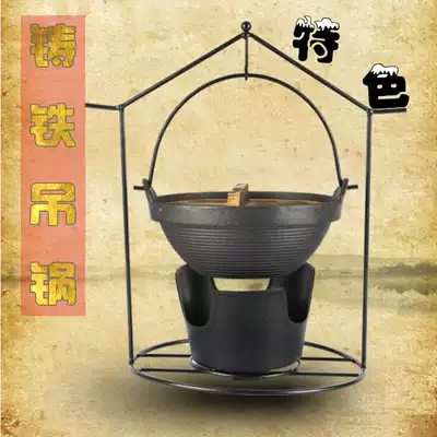 Japanese style cast iron hanging pot dry boiler alcohol stove small hot pot Leisure Farm Traditional raw iron pot specialty stew pot commercial