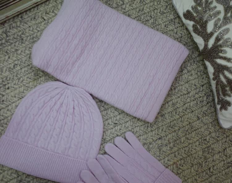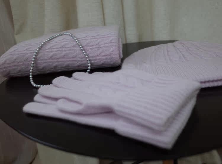 LunaMade Retro Twisted Flower Soft Light Warm Feedback Three-piece Set Seamless Pure Cashmere Scarf Gloves Hat