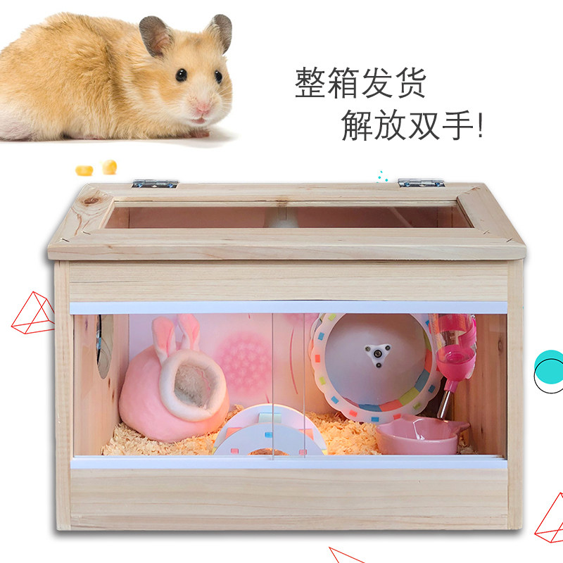 Hamster feeding box Guinea pig honey bag cage insulation wooden box hedgehog feeding box hamster cage oversized villa