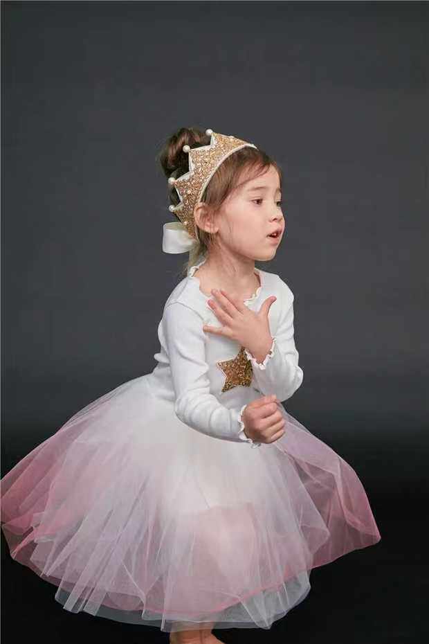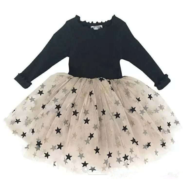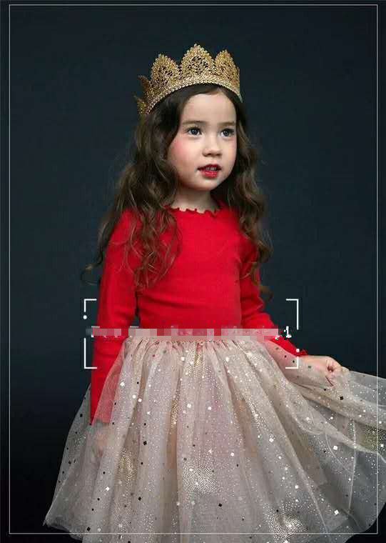 High-end custom girls' skirt bursts sequins star puffy dress princess dress plus velvet western style dress