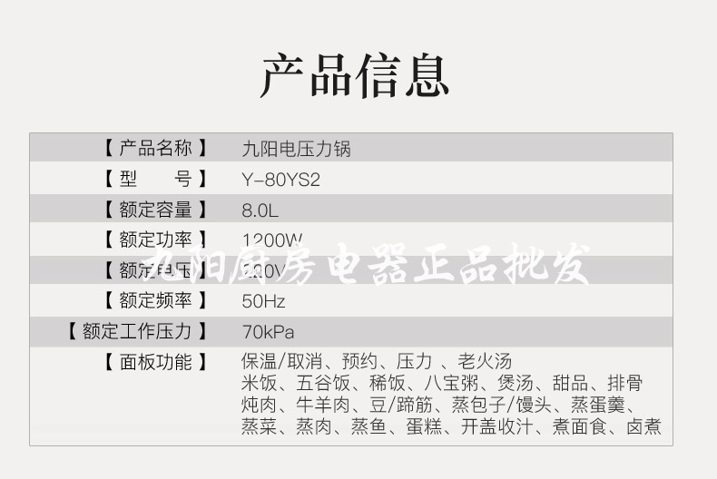 Joyoung Joyoung JYY-60YS80 pressure cooker multi-function 8-liter large-capacity pressure cooker 80YS2