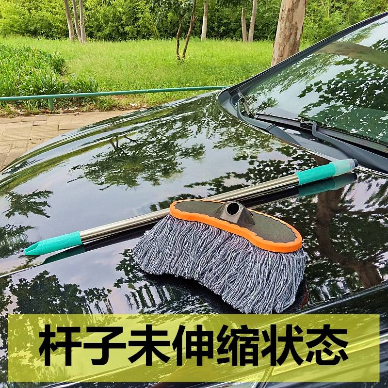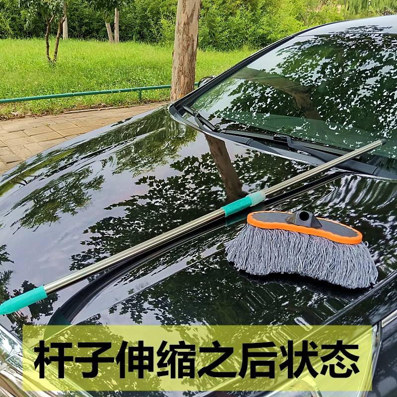 Home Car Wash Plus Long Pole Mop Pure Cotton Soft Hair Wiping Car Dust Removal Telescopic Handle Cleaning Tool Special Car Brush-Taobao