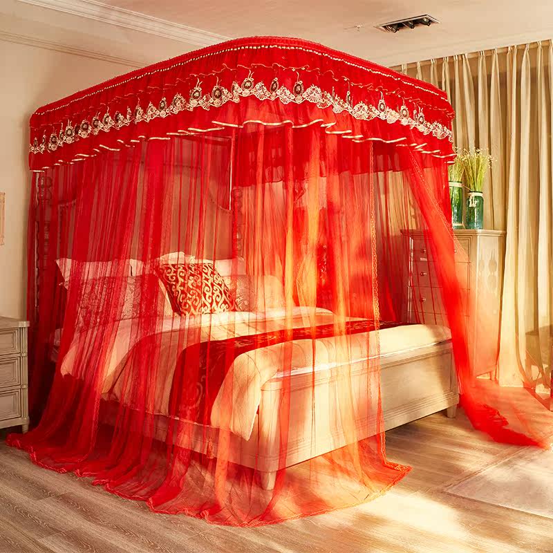 Wedding rail mosquito net big red festive wedding room U-shaped track home floor three door 1 5 m 1 8m bed