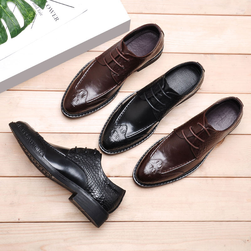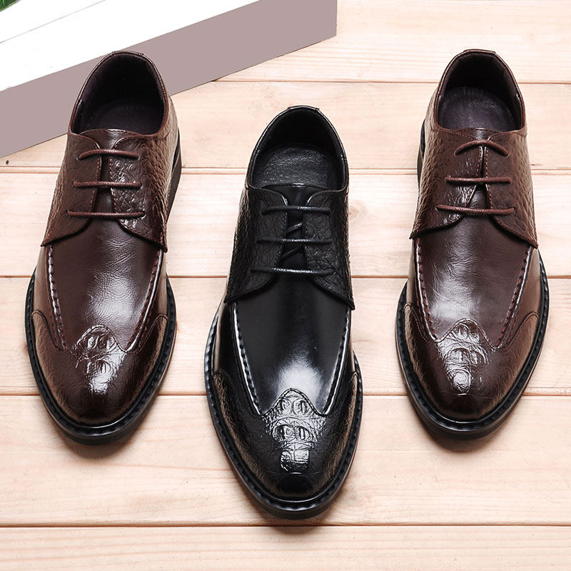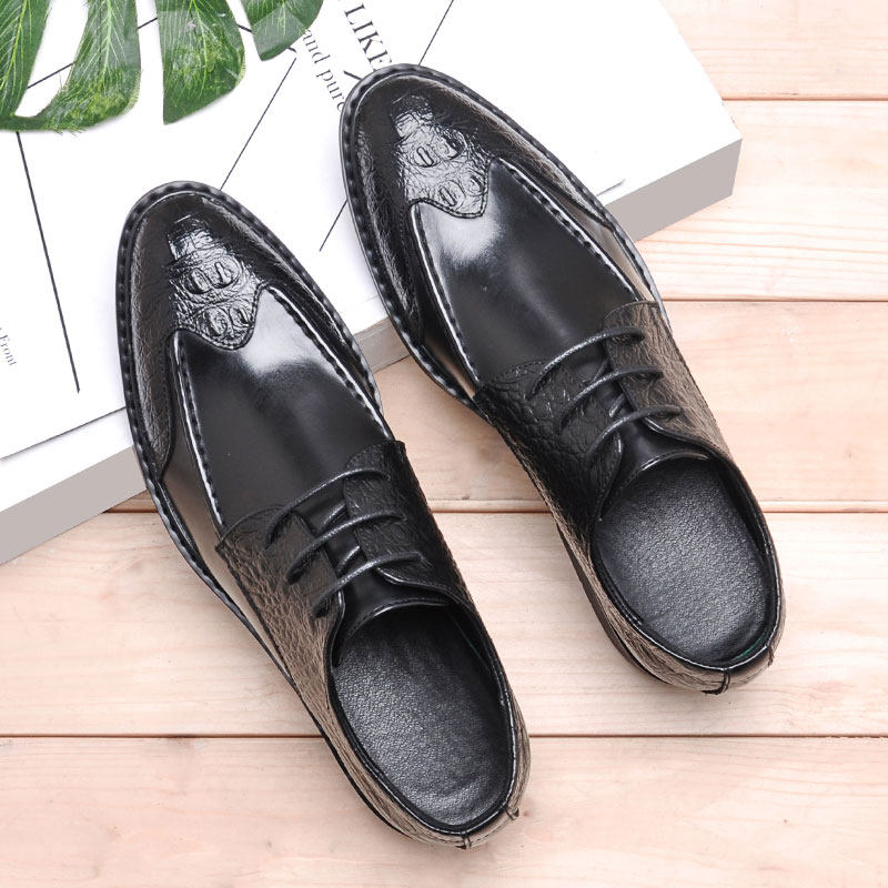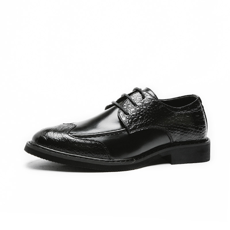 Spring British Han Edition Cut Young Point Tip with Black Bright Flower Business Formal Men's Leather Shoes