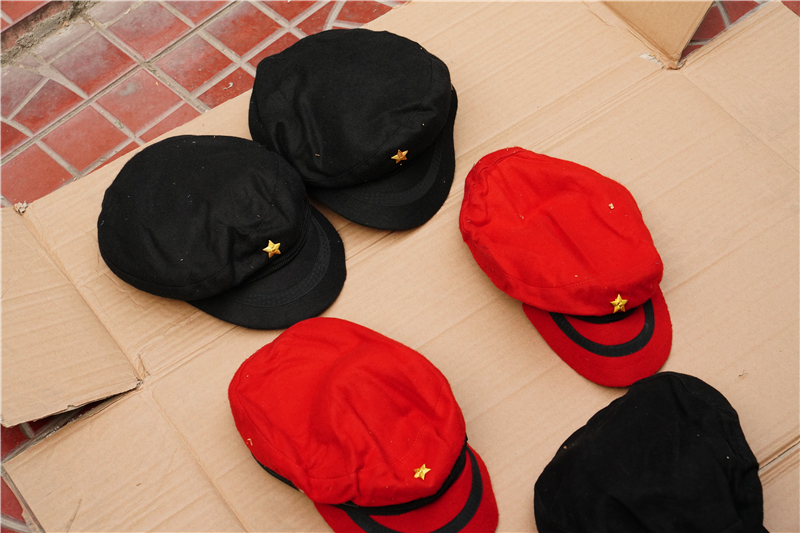 1980s college hat black red random hair with soil deformation special treatment old memorial memorial