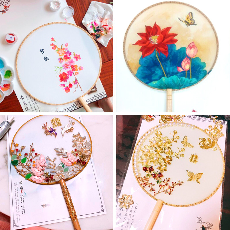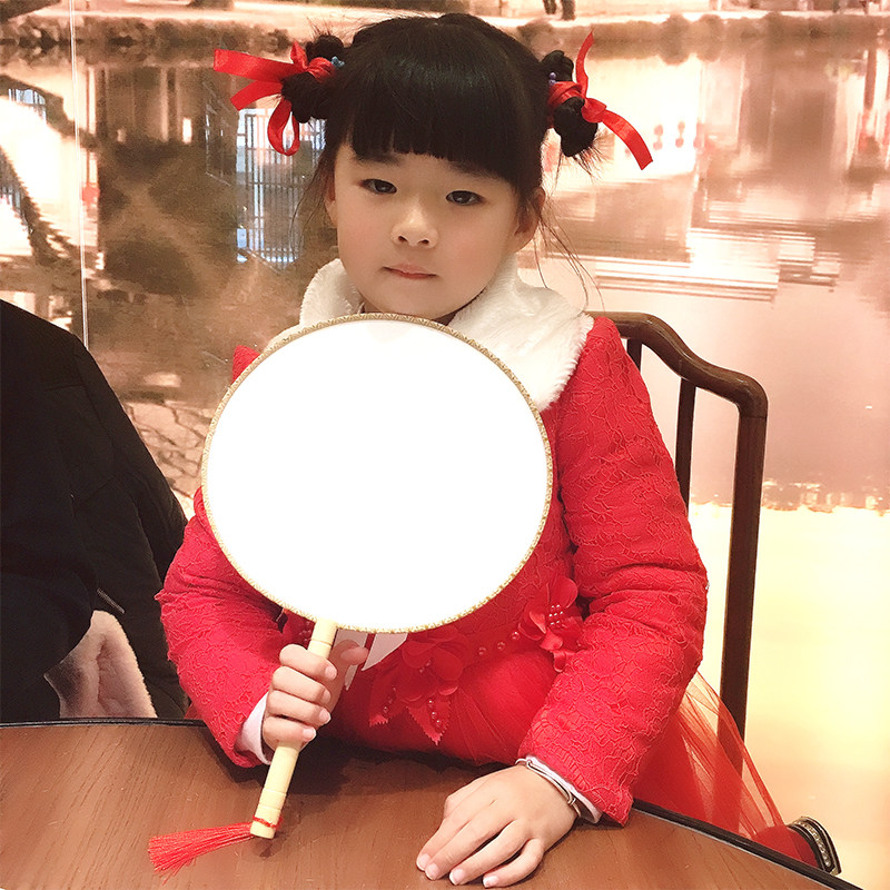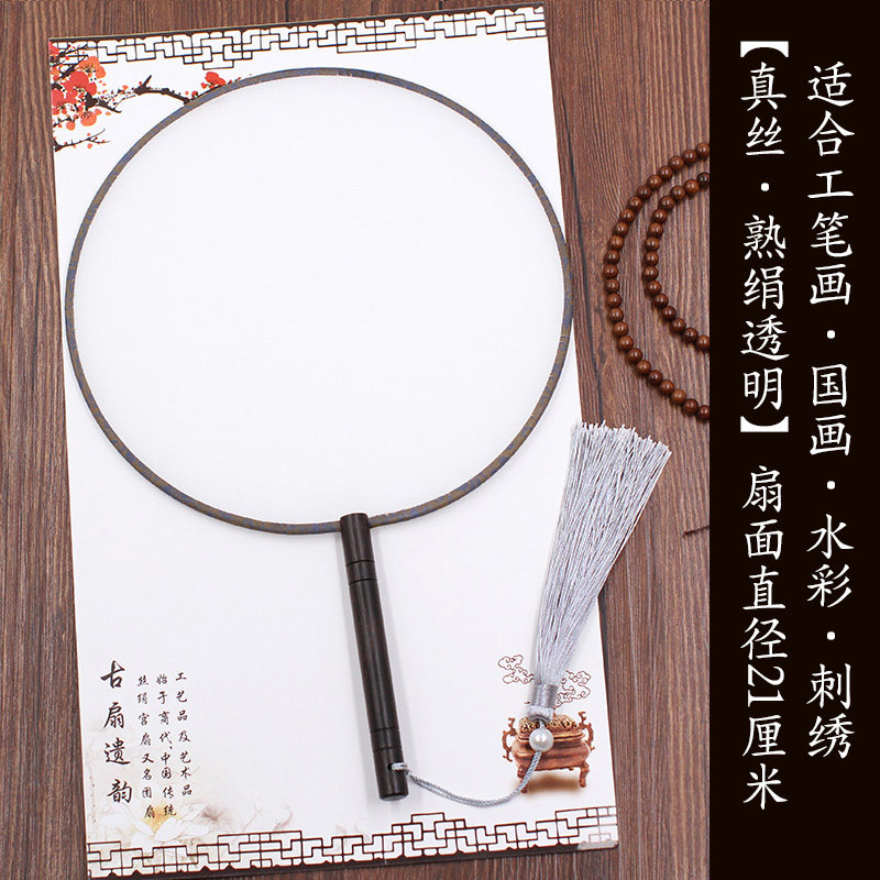 Work Pen Hand Painting Blank Group Fan Diy Round Real Silk Cooked Silk Cloth Palace Fan Round Fan Vintage Embroidered Fan