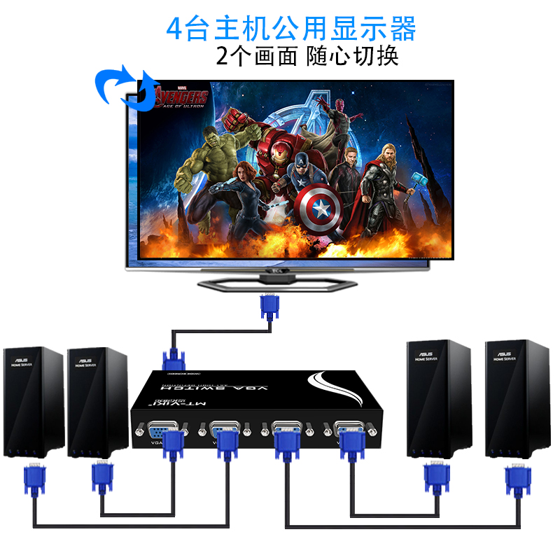 Maxtor-dimensional moment vga switcher 4 in 1 out display screen video switcher screen cutter MT-15-4CH