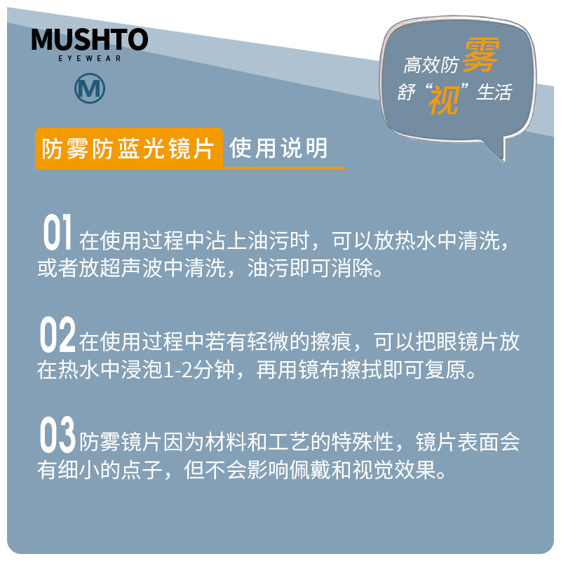 Mingshuntang glasses anti-fog anti-blue light myopia flat eyeglass lenses Ha Qi de-fog dual-effect integrated solid mirror