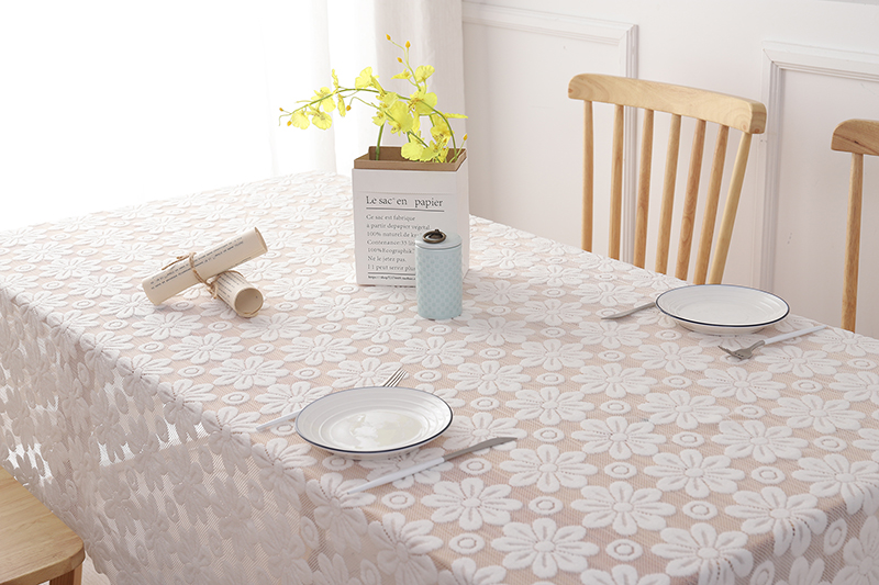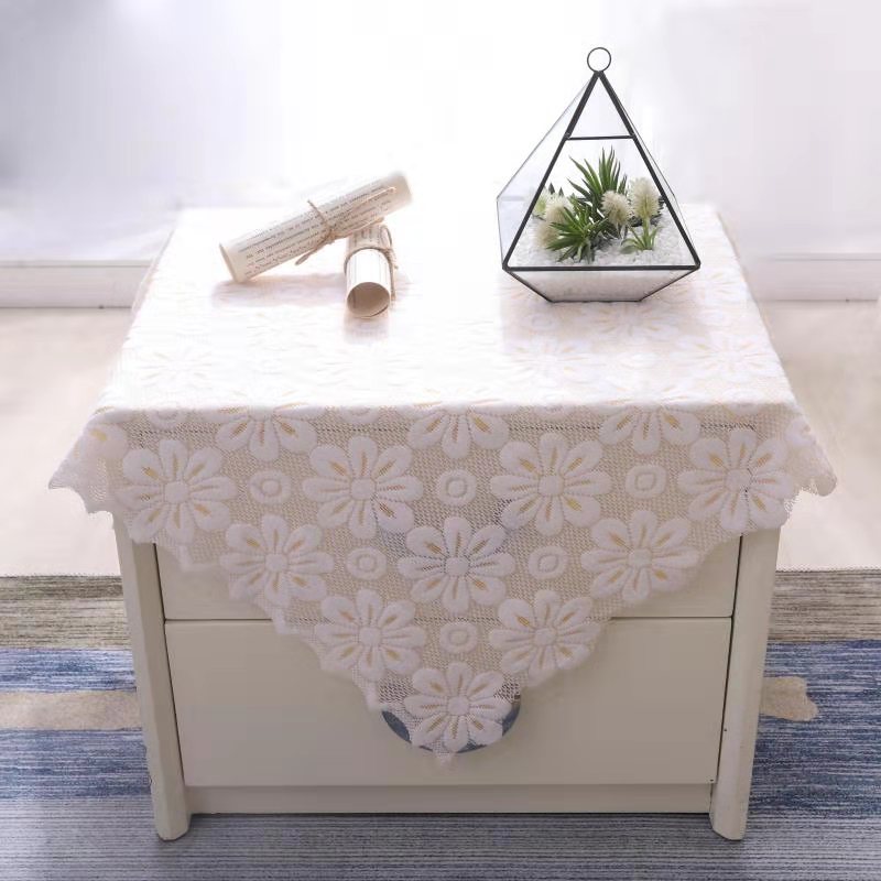 Lace net red dining table cloth White rectangular household living room coffee table tablecloth Bed cabinet American dust cloth cover engraving