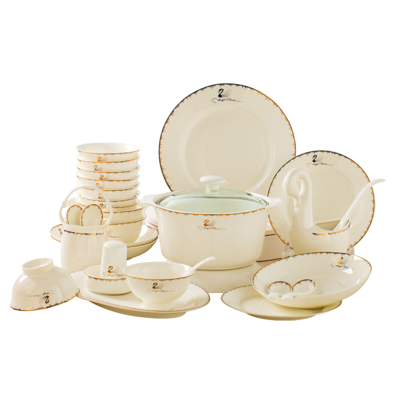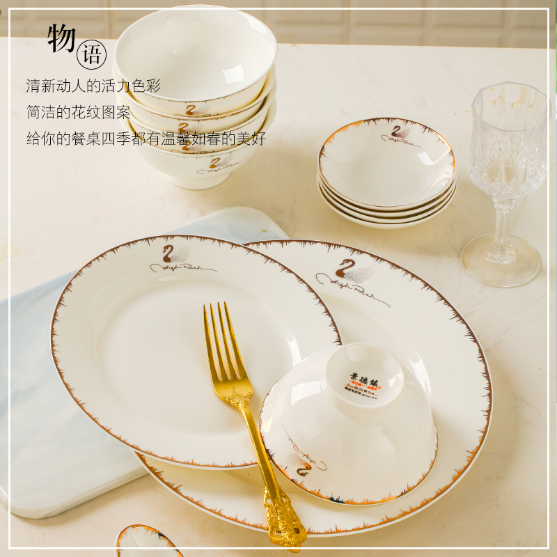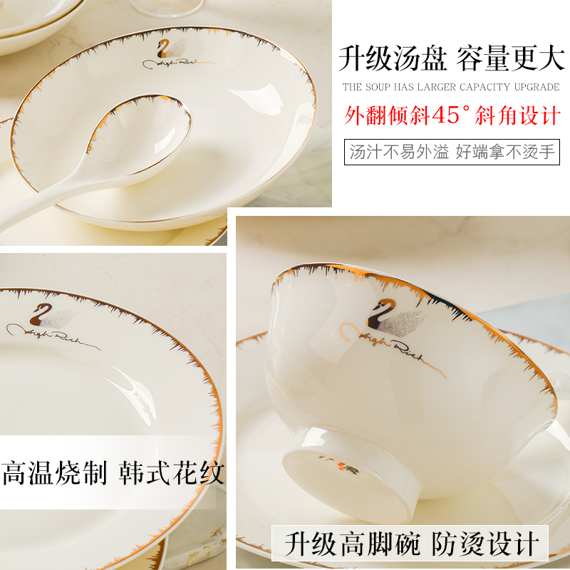 Jingdezhen tableware Home Bone China Porcelain Bowls Dish Suit Eu Style Ceramic Bowl tray Dining Bowls and chopsticks Courtesy Light and luxurious combination