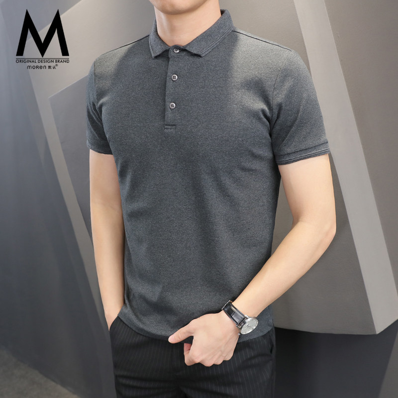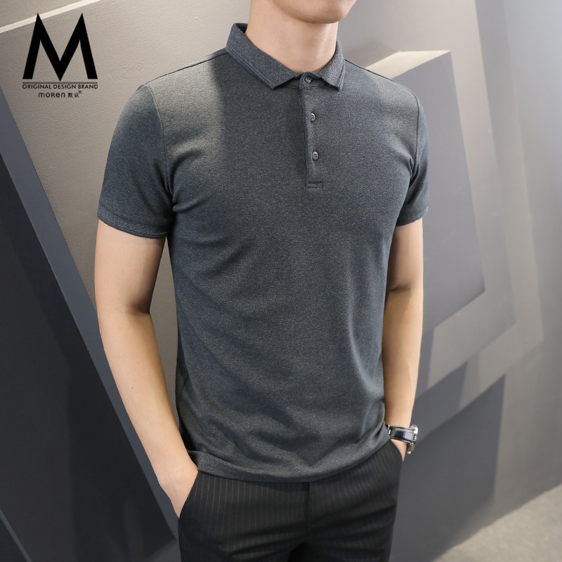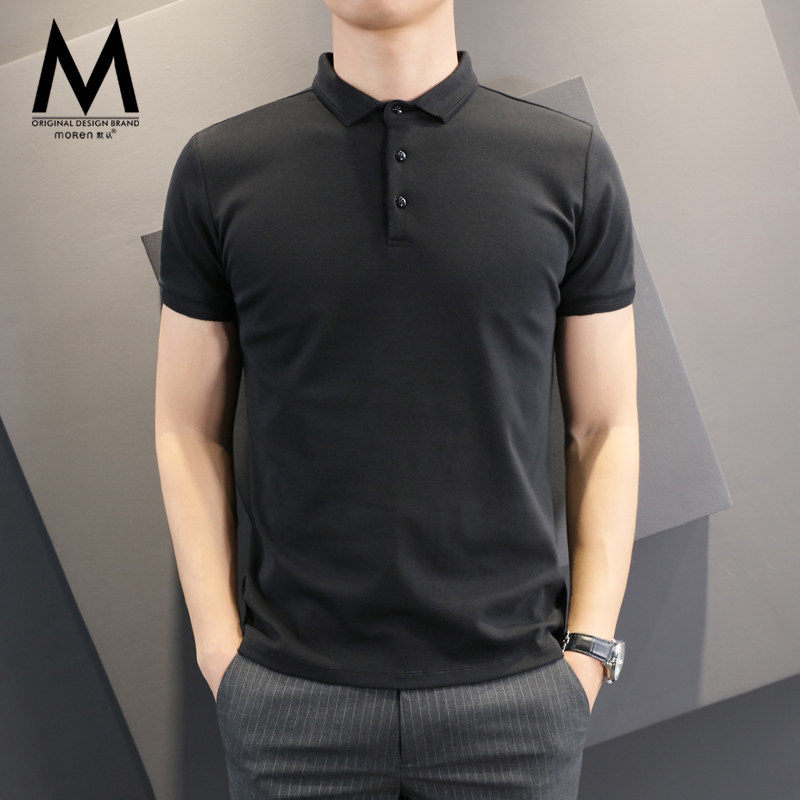 Polo shirt men's short-sleeved summer men's lapel T-shirt Gray slim-fit collar Ralph midot Lauren polo top Black trend men's clothing