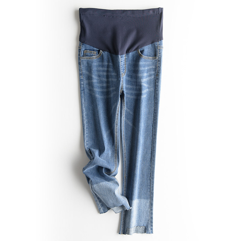 Pregnant woman jeans slim fit Spring and autumn paragraph 2022 new Korean version of the body external wearing damp mother Belly Straight Drum Pants Spring Dress