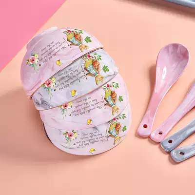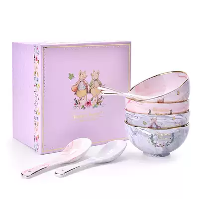 Bide rabbit pattern(4 bowls and 4 spoons)Ordinary packaging Bide rabbit pattern gift box (4 bowls and 4 spoons gift box packaging) Pig Brad pattern(4 bowls and 4 spoons)Ordinary packaging Flower feast set Two sets